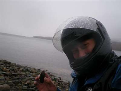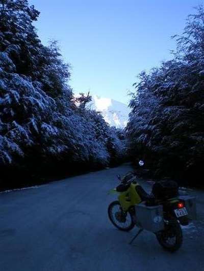 『最悪ですよ。道路には5センチくらい雪が積もっていて、アスファルトの地が全く見えません。もちろんペダルなんかこげないからウシュアイア手前15キロ位まで殆ど押してきましたよ。』