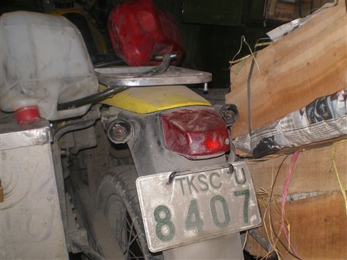 貨物用スペースにバイクを詰めた後の状態 砂埃だらけw