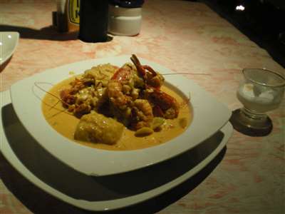 チュぺ デ カマロンというミルクベースのスープで、中には玉葱、ジャガイモ等、野菜とともにザリガニほどの大きさの海老が7,8匹入ってなかなかボリュームがあり、食べてみると去年食べたザリガニ